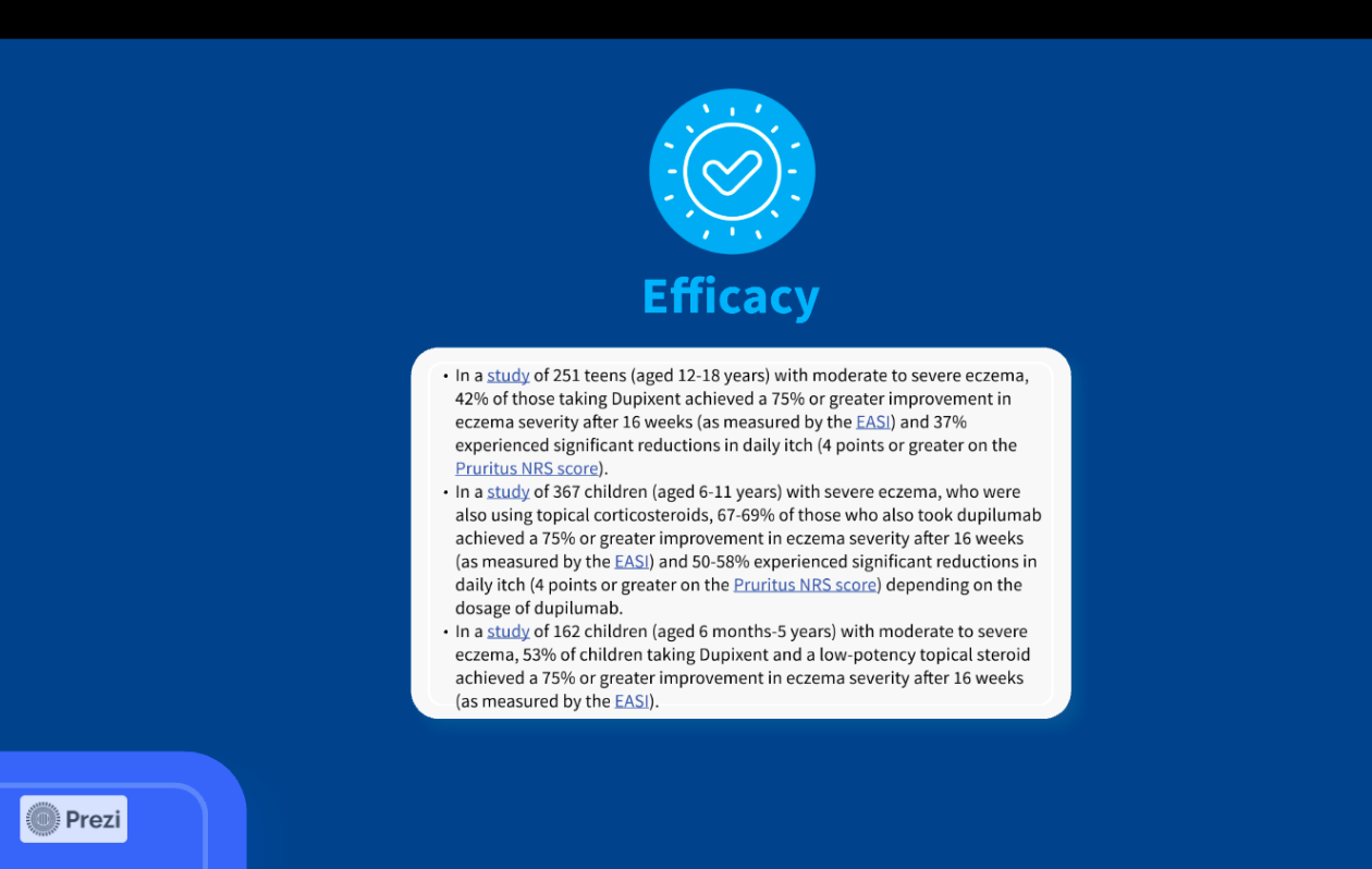 I clicked on Efficacy to get info on how effective Dupixent is in alleviating childhood eczema symptoms and measurable improvements in skin.