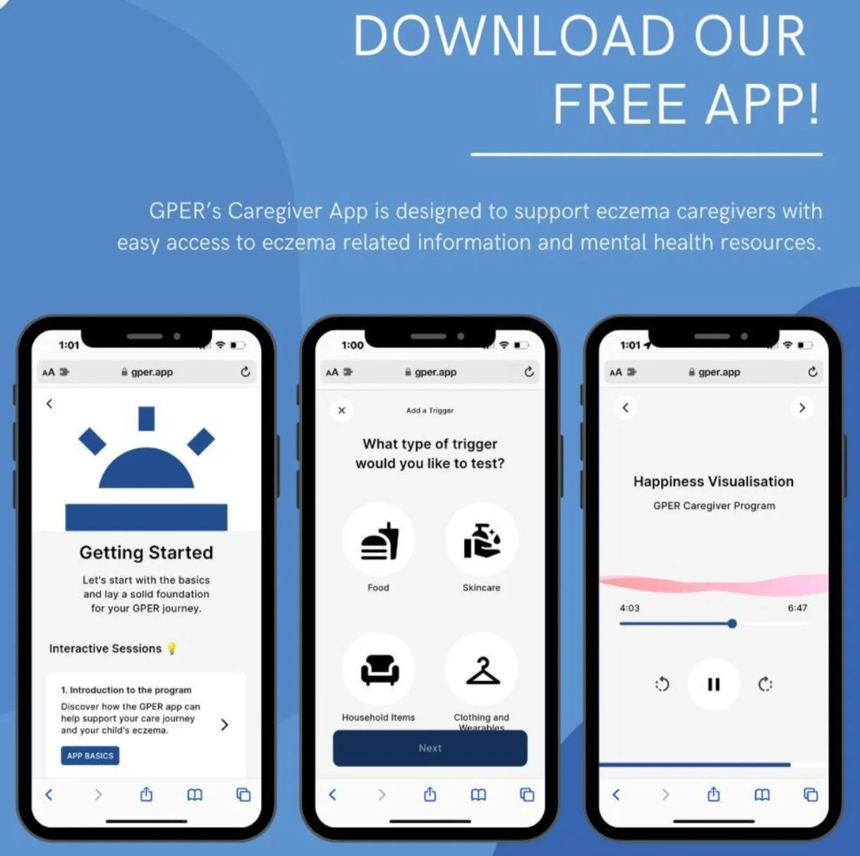 Community Connections Camps for Kids with Eczema Camp Discovery Link Camp Wonder Link Eczema Expo Link Caregiver Connections GPER Support for Eczema Caregivers Connect with other caregivers who understand what you are going through. Join GPER App - Community Section There is a community section where caregivers can ask each other questions and share any helpful tips.gper.appAccess Code: GPER24 Social Media GPER Facebook Link GPER Instagram Link GPER Youtube Link ECZHALE Home More Info Eczema & Mental Health More Info Reducing Treatment Stress More Info Creating a Toolbox to Manage Itch More Info Getting Better Sleep More Info Community Connection More Info Supporting Caregivers More Info Empowering Kids with Coping Skills More info Management Outside the Home More info Other Resources More Info Finding Mental Health Support More Info Resources for Health Care Professionals Coming Soon
